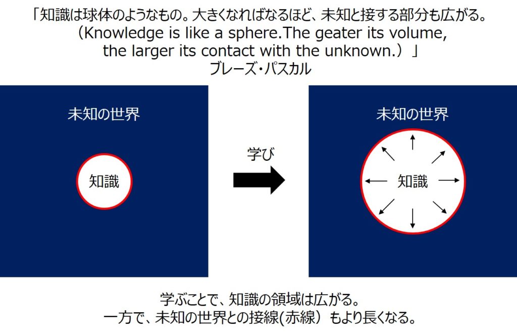 「知識は球体のようなもの。大きくなればなるほど、未知と接する部分も広がる。」パスカル