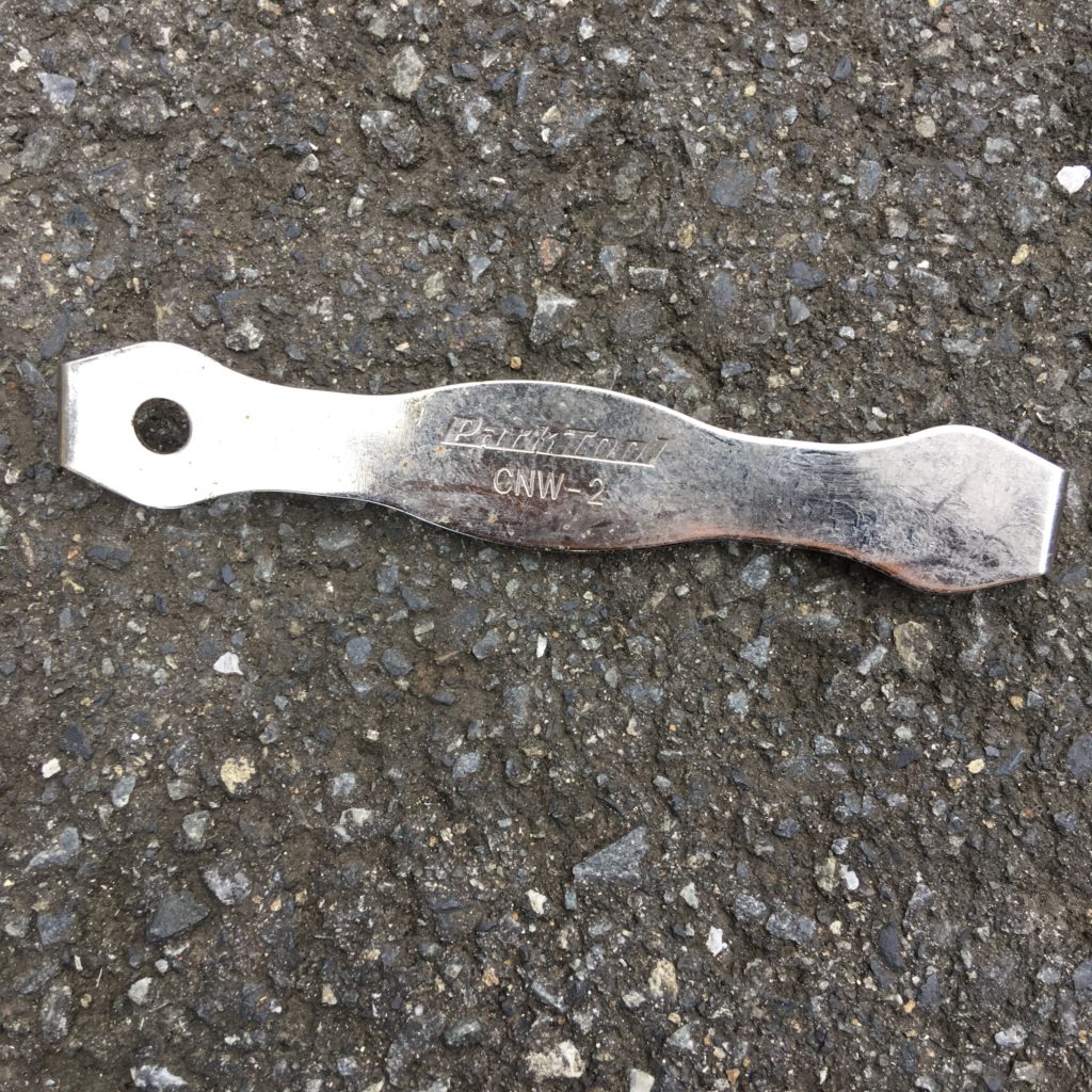そこで必要なのが、この「チェーンリングナットレンチ」(名前長い。。。)です。写真はパークツールの製品。